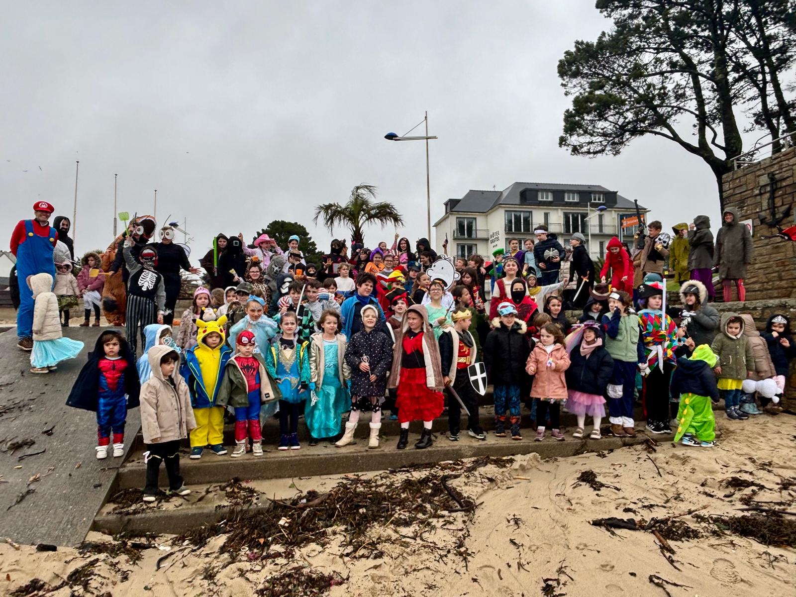 L’après-midi malgré les gouttes nous avons fait un petit défilé jusqu’à la plage avant de revenir à l’école déguster les gaufres au nutella et danser!