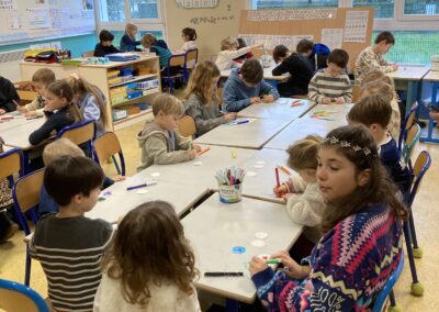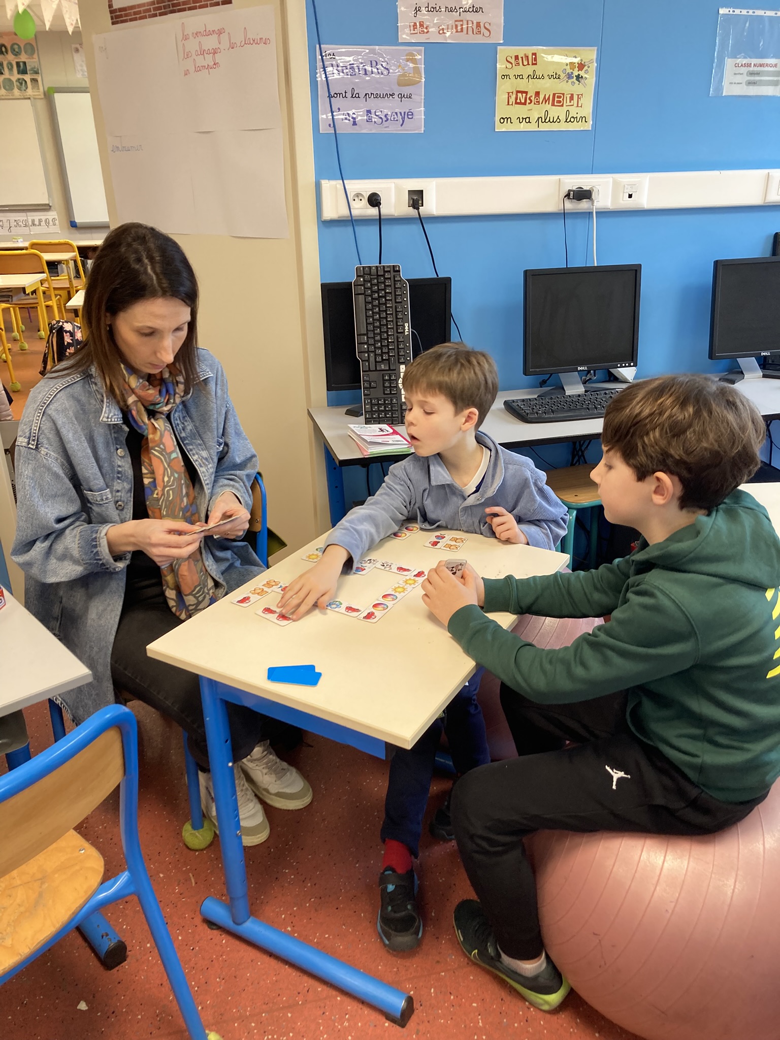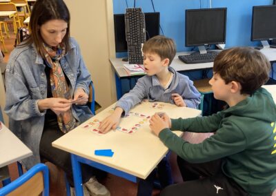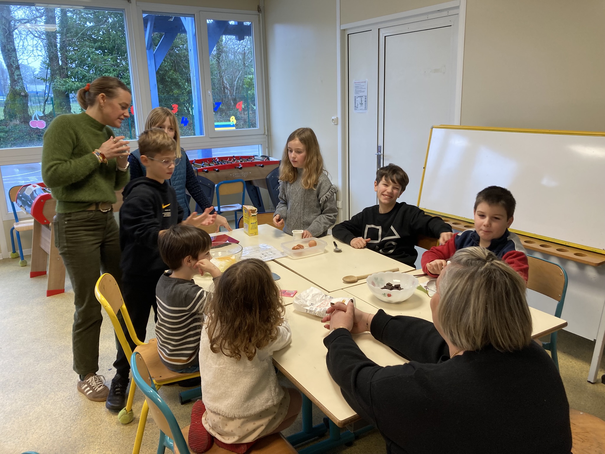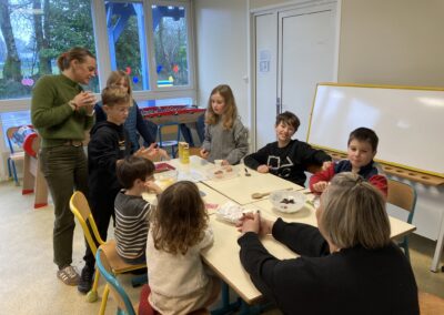 Petits et grands étaient mélangés pour les 3 ateliers tournants du matin: cuisine, art et jeux de société.